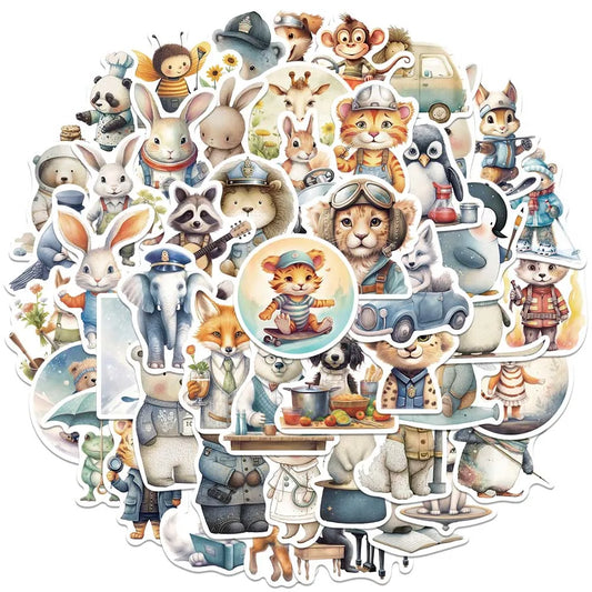 50pcs Cute Cartoon Watercolor Animals Stickers For Laptop Water Bottle Luggage Notebook Waterproof Graffiti Vinyl Decals