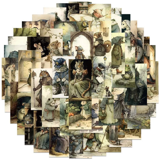 50pcs Retro Aesthetic Cartoon Animals Stickers Decals For Laptop Water Bottle Luggage Noteboook Phone Vinyl Waterproof Graffiti