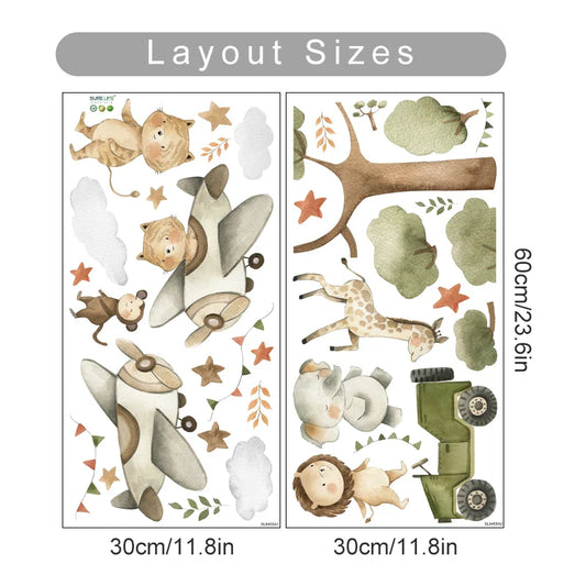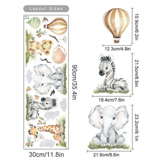 Watercolor Safari Animals Hot Air Balloon Wall Stickers for Kids Room Decor
