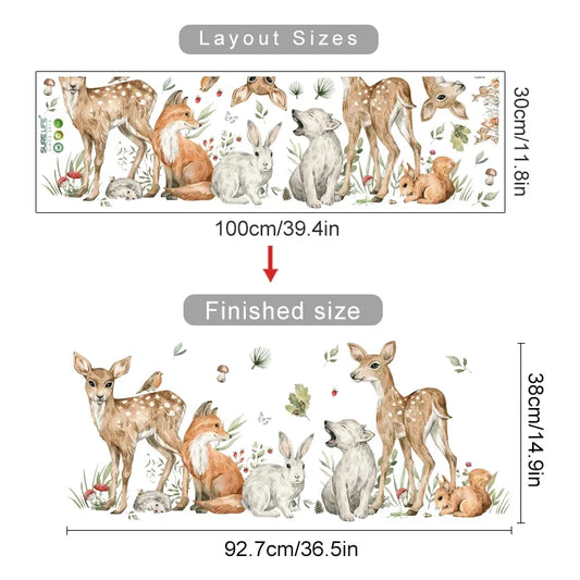 Cartoon Forest Animals Deer Wall Stickers Nursery Vinyl Decals Kids Room Decor