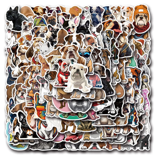 Bulldog Cartoon Stickers Pack - Pet Dog Decals for Luggage, Laptop, Guitar, Bike, Skateboard