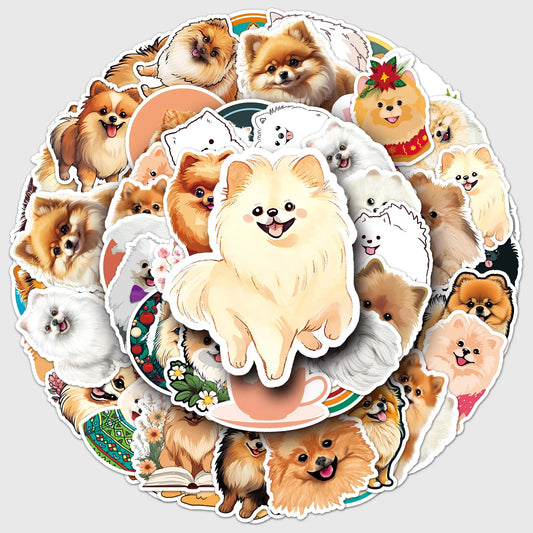 50Pcs Pomeranian Cartoon Waterproof Vinyl Stickers for Skateboard Snowboard Home Decor