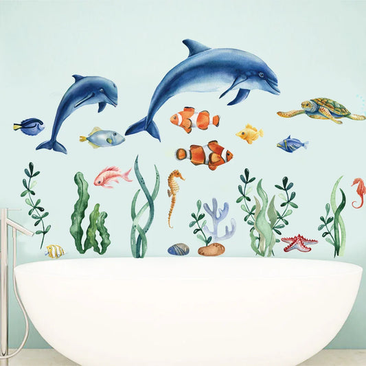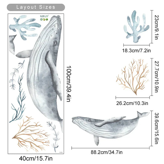 Cartoon Whale Turtle Seaweed Watercolor Wall Stickers Nursery Decor