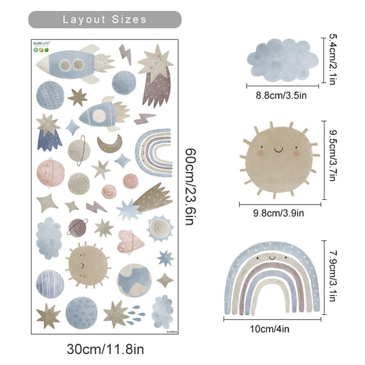 Boho Space Adventure Stars Wall Stickers for Kids Room Decor