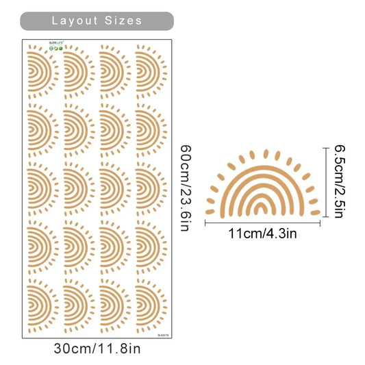 Boho Rainbow Sun Nursery Wall Stickers Watercolor Decals for Kids Room