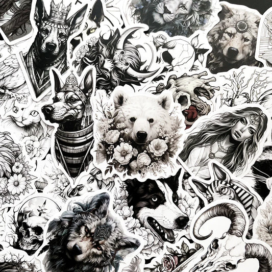 Gothic Animal Graffiti Stickers for Laptop, Bike, Car, Helmet (10/50 Pcs)