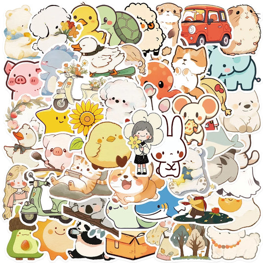 Cute Cartoon Animal Stickers - Waterproof PVC for Bike, Fridge, Bumper (10/30/50pcs)