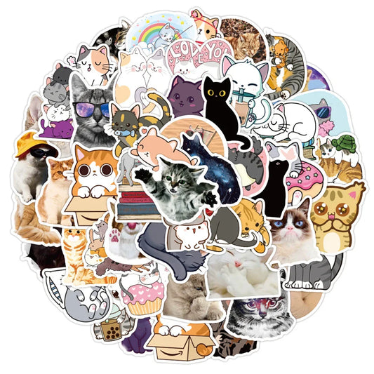 Cute Cat Cartoon Stickers Pack - Kawaii Animal Kids DIY Laptop Scrapbook Guitar Car Decals