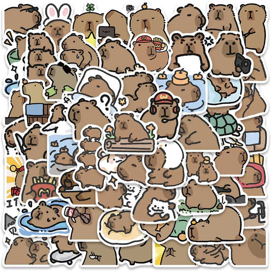 Capybara Stickers Pack: Cute Cartoon Decals for Laptop, Phone, Guitar, Car, Kids