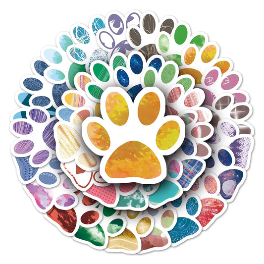 50Pcs Dog Paw Print Cartoon Waterproof Vinyl Stickers for Skateboard Snowboard