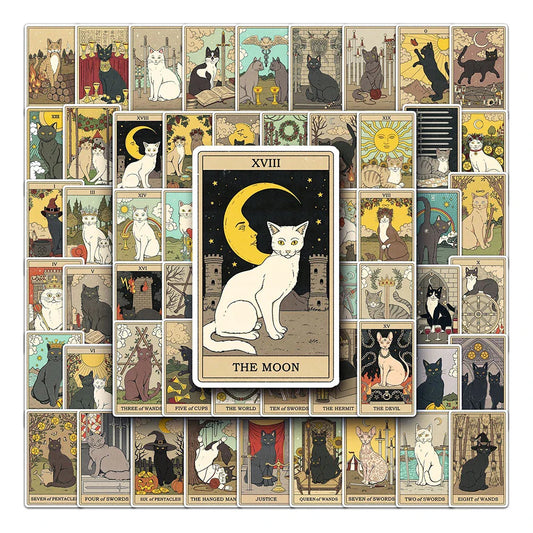 Tarot Cat Stickers: 10/30/62pcs Mystery Divination Decals for Laptop, Bike, Phone, Car
