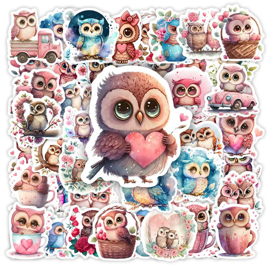 Kawaii Aesthetic Owls Stickers Cute Watercolor Animal DIY Toy Gift Graffiti Decal for Phone Luggage Laptop Scrapbook Waterproof
