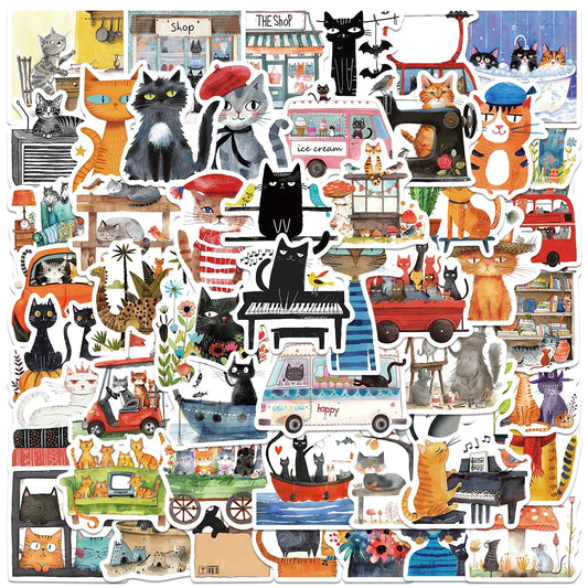 50Pcs Cute Cat Waterproof Vinyl Stickers for Skateboard Snowboard