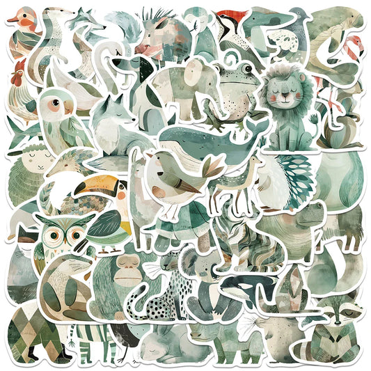 50pcs Aesthetic Cute Cartoon Light Green Animals Stickers Laptop Water Bottle Luggage Notebook DIY Waterproof Graffiti Decals