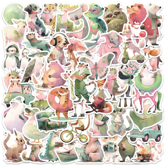 50pcs Aesthetic Cute Cartoon Pink Green Animals For Laptop Water Bottle Luggage Notebook Waterproof Graffiti Vinyl Decals