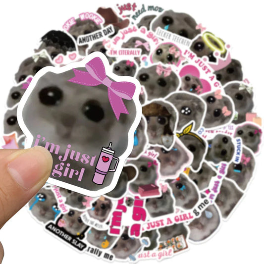 56pcs Sad Hamster Stickers Cute Cartoon Animal Water Bottle Sticker Luggage Laptop Guitar Phone Diary Waterproof Vinyl Decals