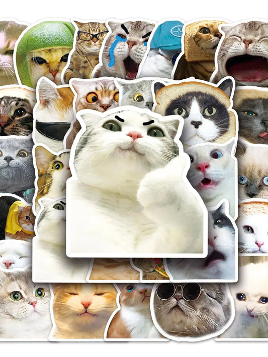50Pcs Cat Emoji Waterproof Vinyl Stickers for Skateboard Snowboard