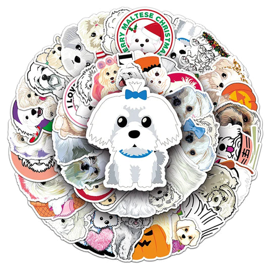 50Pcs Maltese Dog Cartoon Waterproof Vinyl Stickers