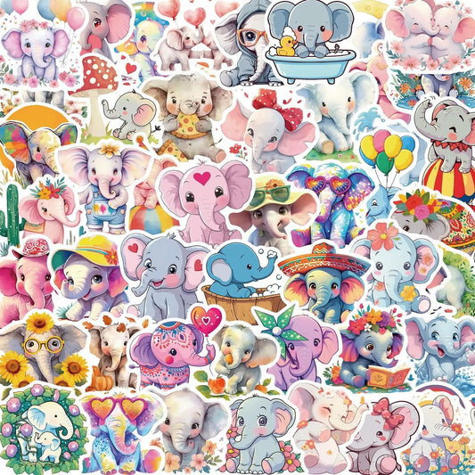 10/50pcs Kawaii Pink Elephants Cute Animal Stickers Aesthetic Decals DIY Laptop Luggage Motorcycle Phone Waterproof Sticker Toy