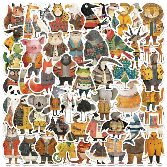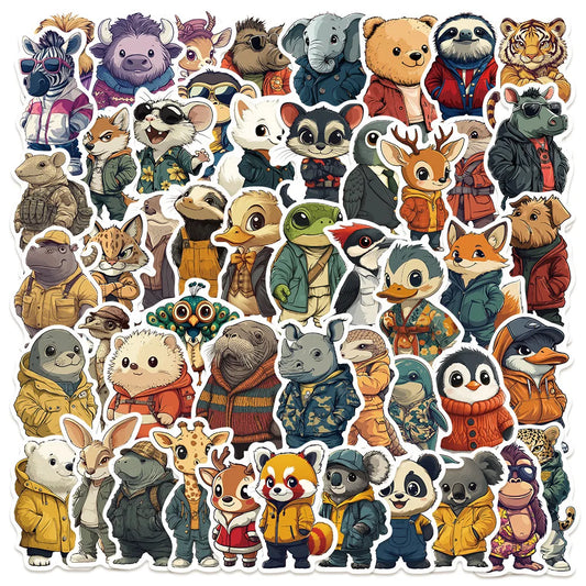 10/50PCS Cute Funny Animal Dressed Illustration Stickers Decals DIY Scrapbooking Laptop Bike Phone Waterproof Sticker Gift Toy