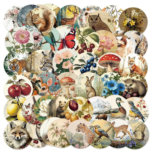 10/50pcs Vintage Cute Forest Plants Animals Label Stickers Aesthetic Graffiti DIY Notebook Laptop Water Bottle Luggage Sticker
