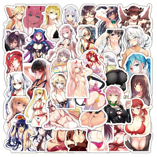 Adult Anime Waifu Stickers Decals - 10/30/50/100pcs Waterproof for Skateboard, Laptop, Phone, Luggage, Car