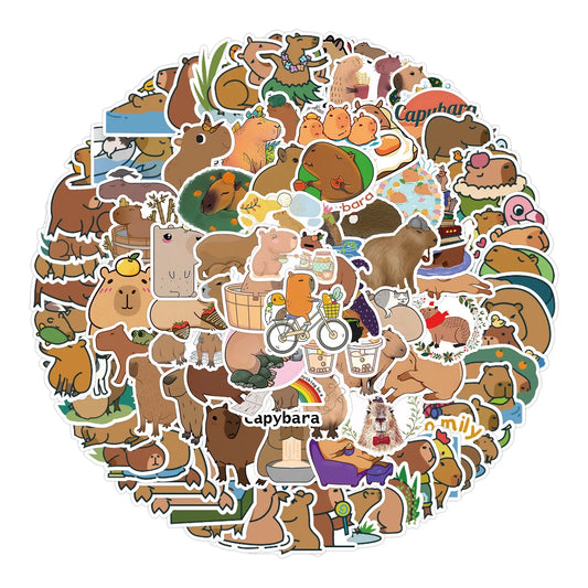 65pcs Kapibara Cartoon Stickers for Luggage, Water Bottles, Phones, Laptops, Cars, Scooters, Refrigerators