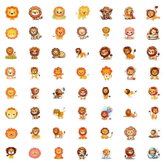 55pcs Cute Lion Stickers for Laptop, Phone, Car, Scooter, Suitcase, Water Bottle, Stationery, Refrigerator Decoration