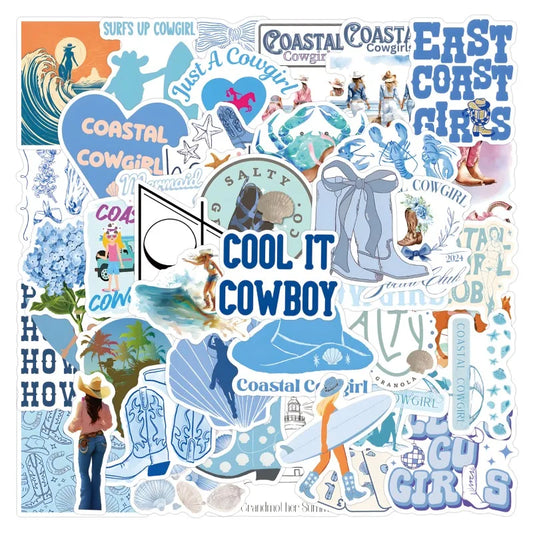 55pcs Coastal Cowgirl Stickers for Laptop, Phone, Water Bottle, Suitcase, Stationery, Refrigerator Decor