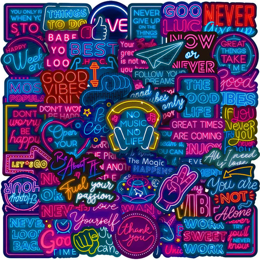 Cartoon Neon Motivation Stickers - 10/30/50pcs for Laptop, Phone, Fridge, Scrapbook