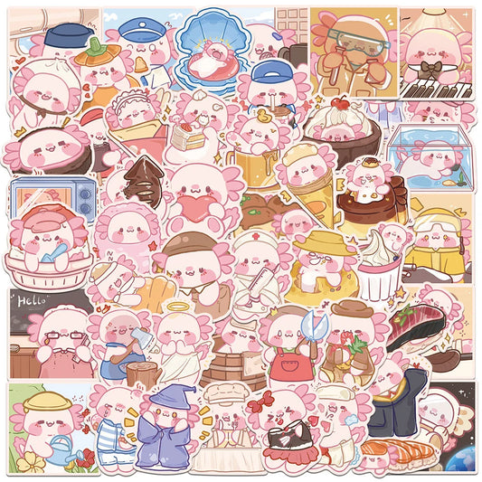 Axolotl Cartoon Stickers Pack - Cute, Funny, Waterproof Decals for Phone, Laptop, Notebook, Suitcase
