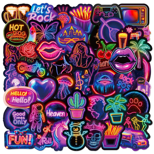 Cartoon Neon Light Graffiti Stickers Decals for Laptop Phone Luggage Guitar Fridge Waterproof Kids Toys