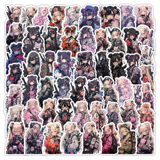 Pink Gothic Cartoon Girl Stickers for Laptop, Phone, Guitar, Scrapbook, Luggage, Car Decoration, Kid Toy - 10/30/60pcs