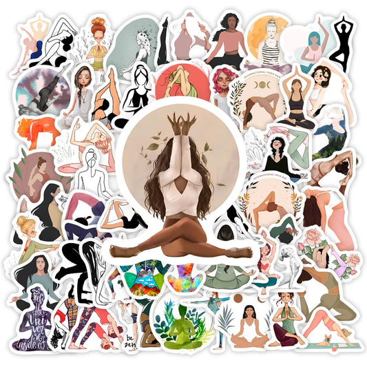 Aesthetic Yoga Pose Stickers Mountain Warrior Tree Pose DIY Toys Decal for Laptop Scrapbook Decorative Phone Bottles Waterproof