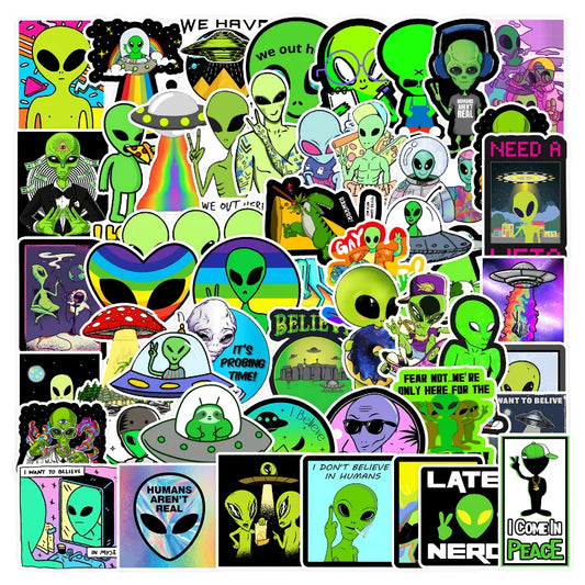 Cartoon Alien ET Stickers for Luggage, Water Bottle, Phone, Laptop, Guitar, Scrapbook, Helmet, Car, Wall Decal - 10/25/50pcs