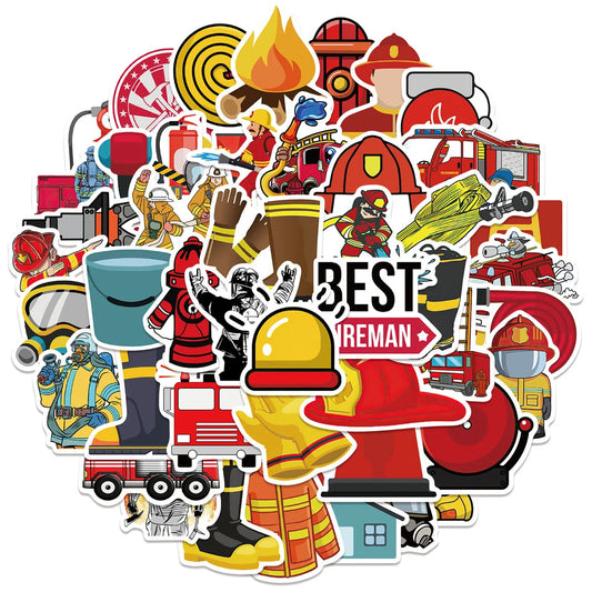 10/52Pcs Cartoon Red Firefighter Waterproof Cool Stickers for Scrapbook Skateboard Snowboard Laptop Luggage Bicycle Kids Toys