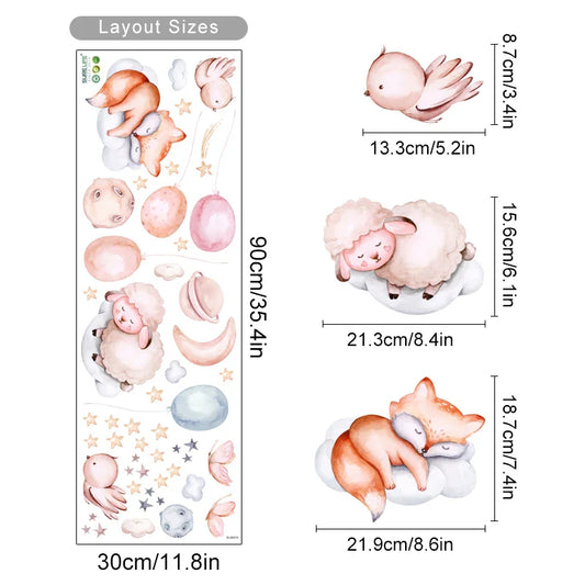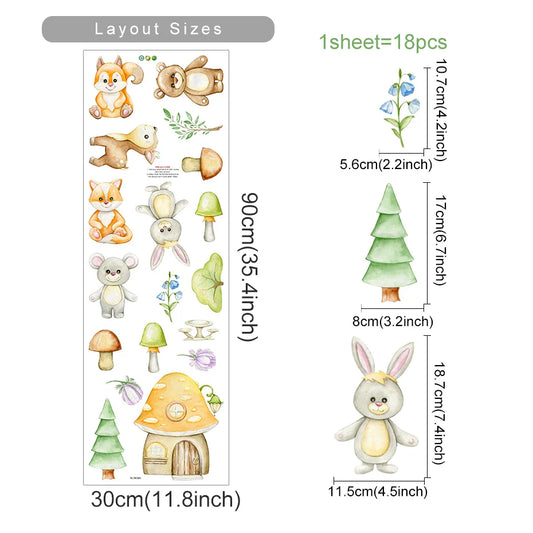 Cute Cartoon Animal Wall Stickers: Rabbits, Foxes, Bears Nursery Decor