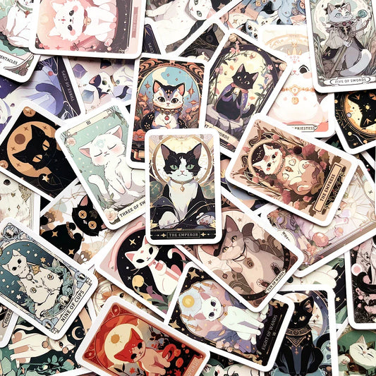 Cartoon Cat Tarot Stickers Waterproof Astrology Decals Scrapbooking Laptop Luggage
