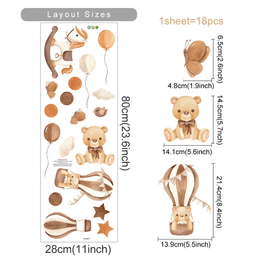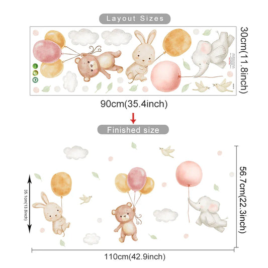 Bear Rabbit Balloon Cloud Nursery Wall Decals Removable Posters Kids Room Decor