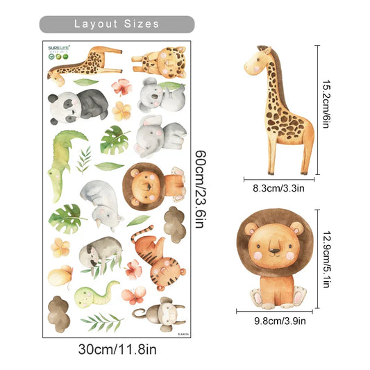 Boho Elephant Safari Animals Watercolor Nursery Wall Decals Decor