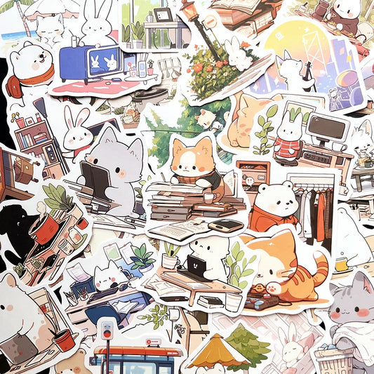 10/50Pcs Cute Animal Cat Stickers Pack for Kids Scrapbooking Luggage Car Decoration