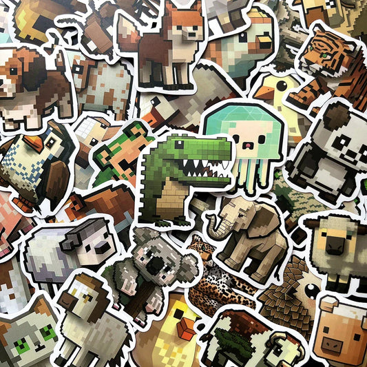 Cartoon Pixel Animal Stickers for Kids Teens Luggage Laptop Fridge