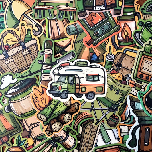 Cartoon Camping Car Gear Stickers for Snowboard Laptop Luggage Fridge DIY Vinyl