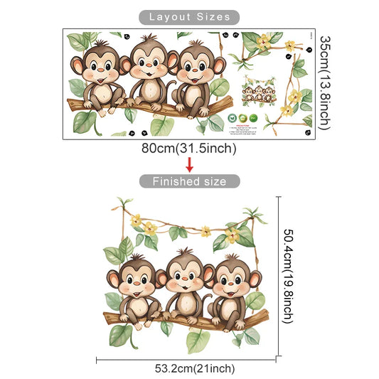 Cartoon Monkey Vine Wall Stickers for Nursery Kids Room Decor