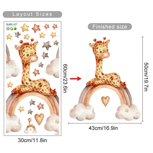 Cute Giraffe Rainbow Stars Clouds Nursery Wall Decal