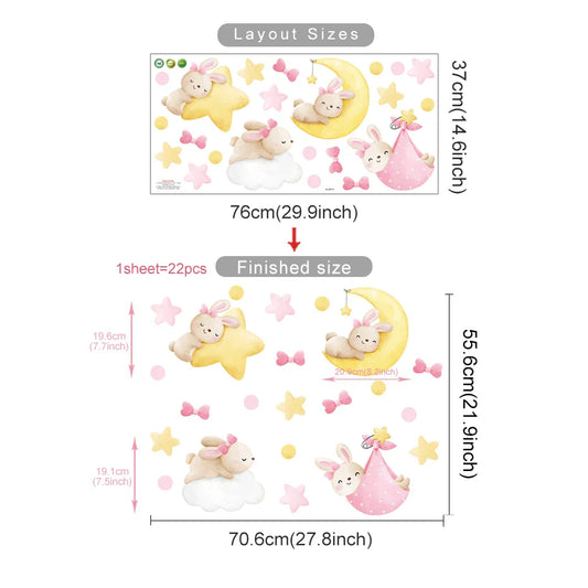 Cute Rabbit Stars Clouds Wall Stickers Removable Kids Room Nursery Decor Decals