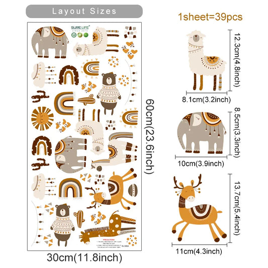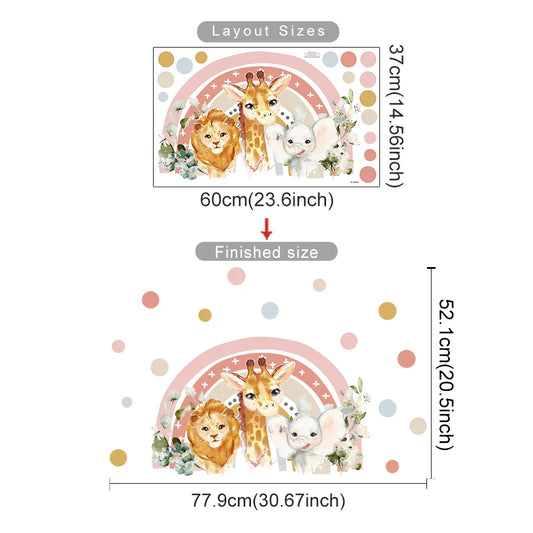 Boho Cute Animal Rainbow Wall Stickers for Kids Room Decor