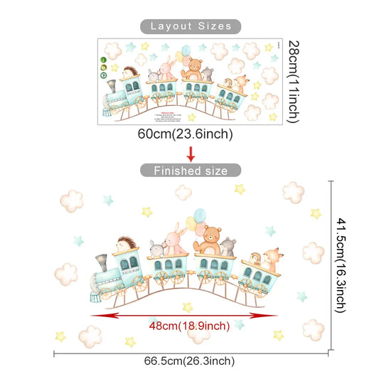 Cartoon Animal Train Wall Stickers for Kids Nursery Bedroom Decals