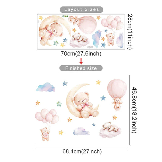 Cute Bear Moon Stars Wall Sticker for Kids Room Decor