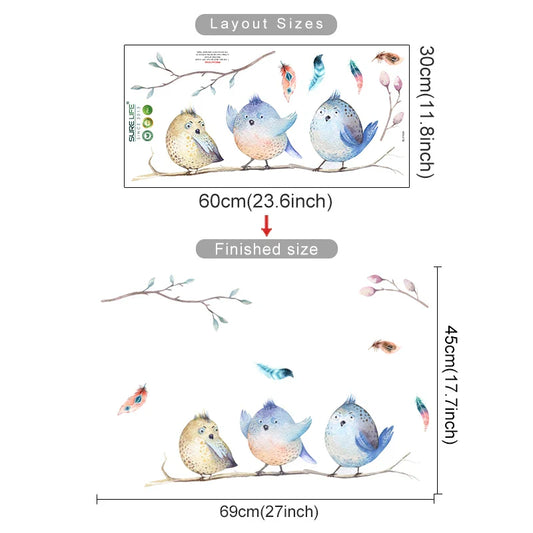 Watercolor Cartoon Bird Leaves Wall Stickers for Kids Nursery Room Decals
